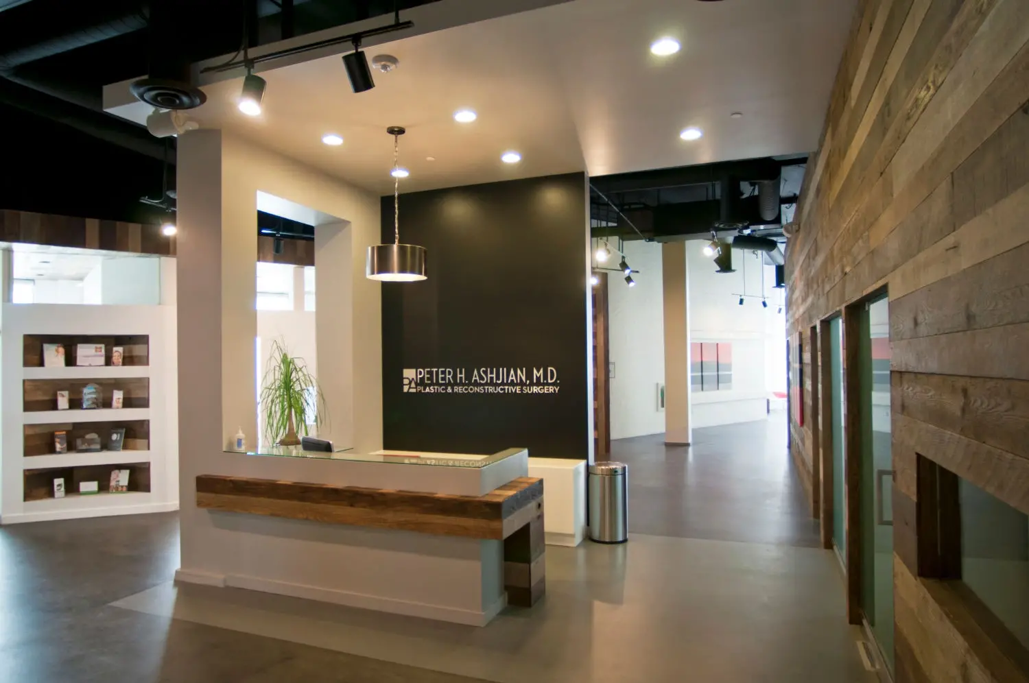 This plastic surgeon’s office looks anything but a medical clinic. The client wanted the space to look less like a doctor’s office and more like an art gallery.
